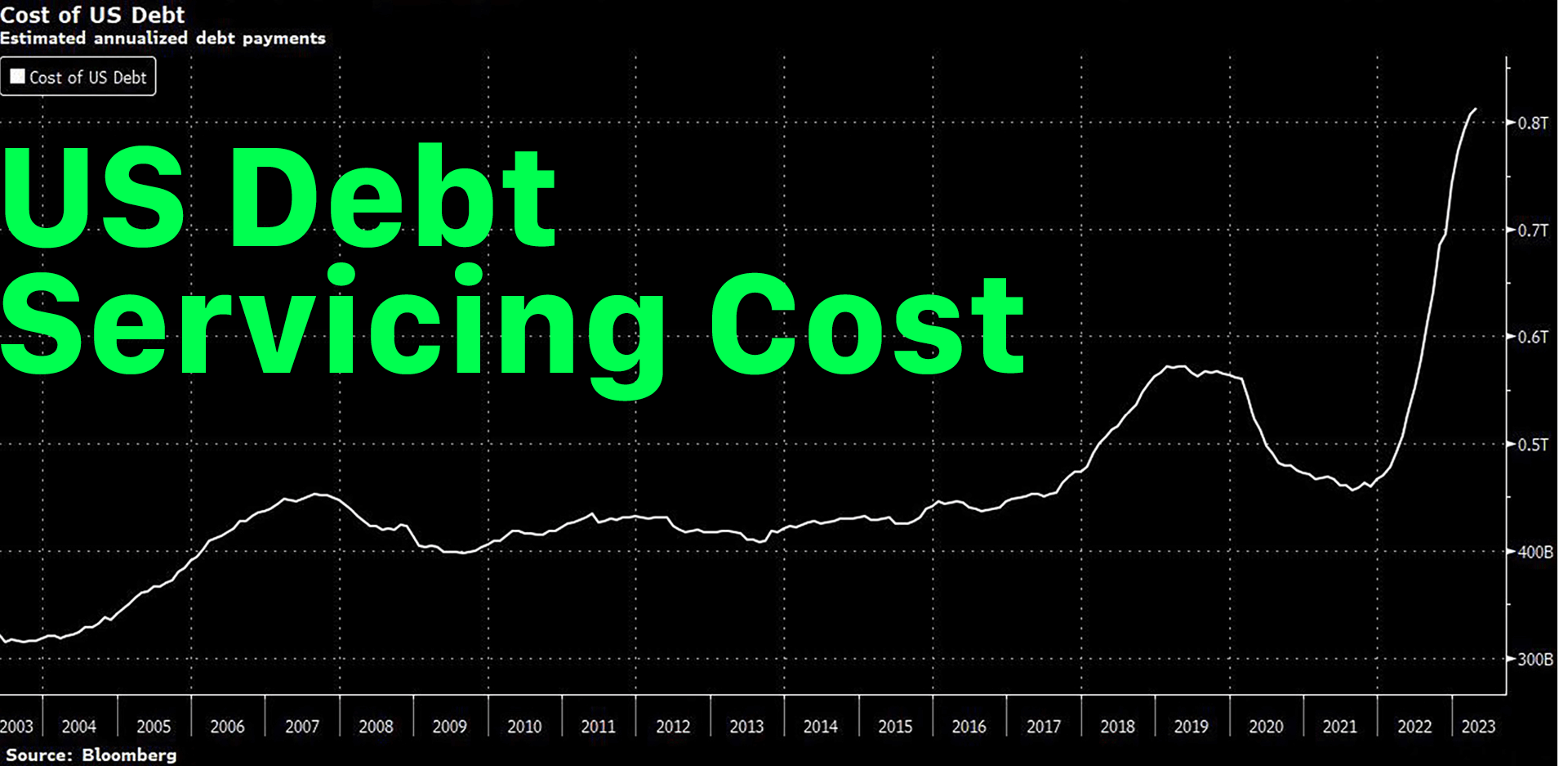On top of that, the US government now spends more on servicing its super-crazy debt burden than on its military …