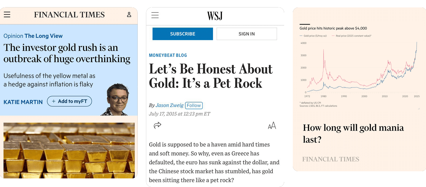 Today, financial media in London and New York still run a consistent gold aversion training or unmarketing campaign against gold ownership, steering investors towards the paper and digital products that keep the bubble from bursting.