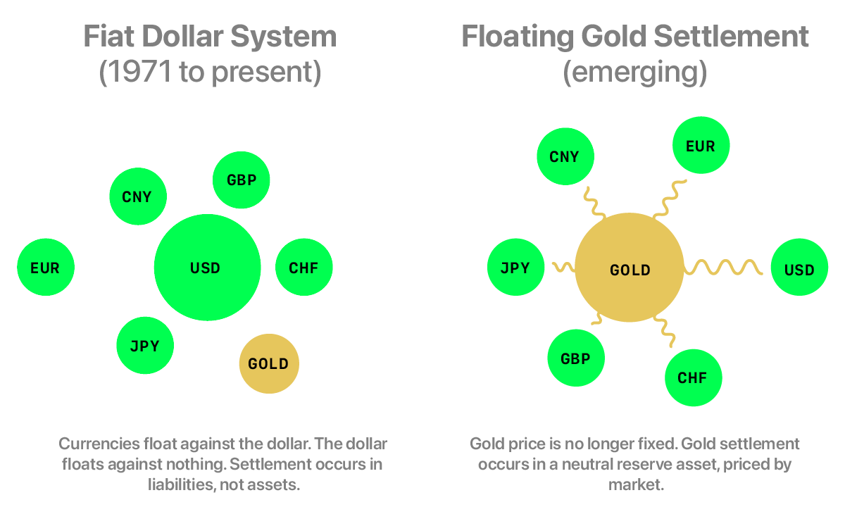 That process is now underway. Central banks are buying gold at levels not seen in decades. BRICS countries are repositioning gold closer to the centre of the global monetary system, not to replace the dollar, but to reduce reliance on U.S. government debt as the primary reserve asset.