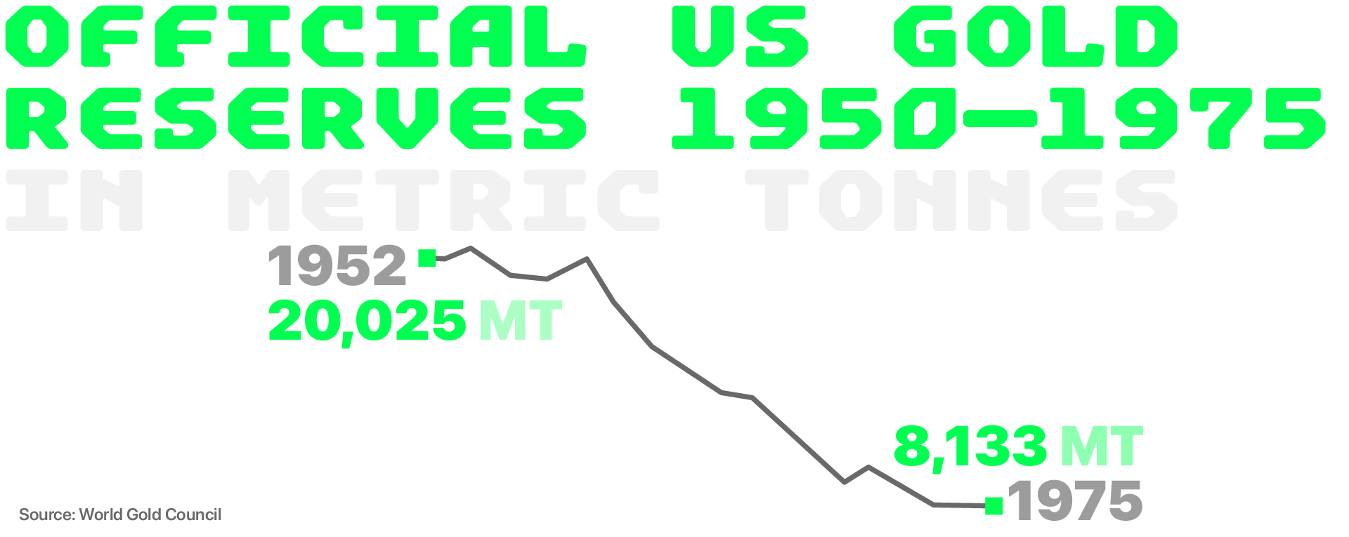 The more Americans consumed, the more gold was lost. And from the 1950s the US Treasury's gold holdings fell to 8,133 tonnes. This required serious action: