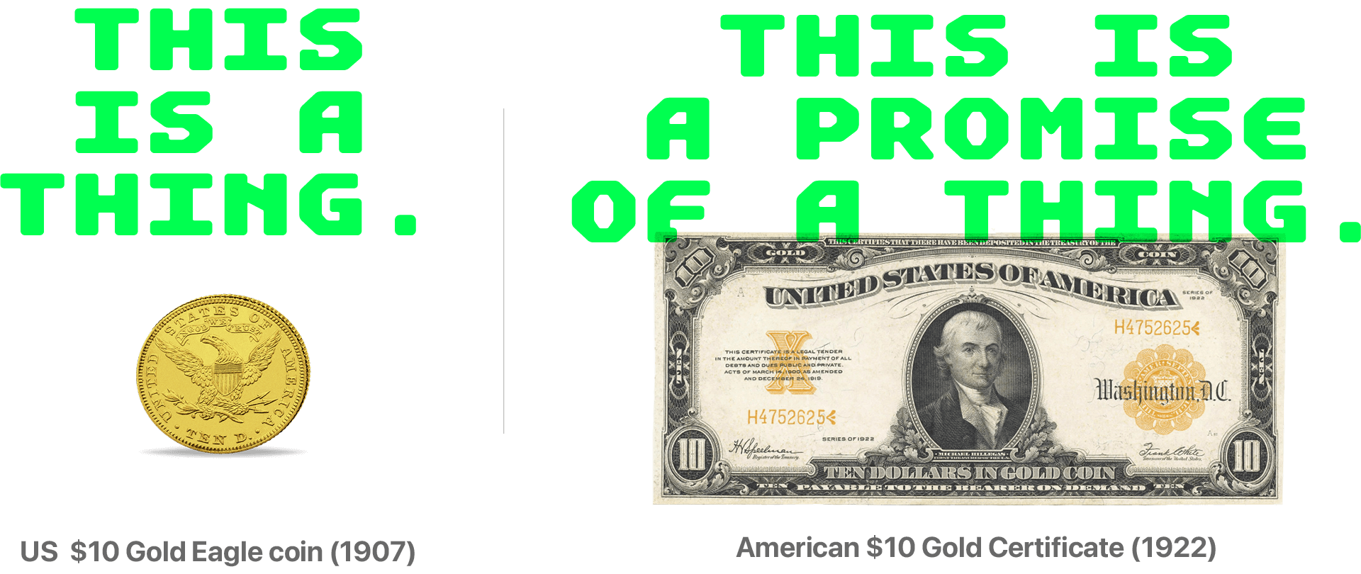 - A banknote issued by a national central bank promised a specific weight of gold.