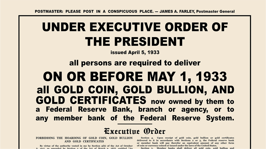 To stimulate the economy, FDR decreed that the dollar be devalued by 70% against gold. He also ordered the confiscation of all 'gold coin, gold bullion, and gold certificates' held by American citizens. These measures successfully inflated away much of America's debt.
